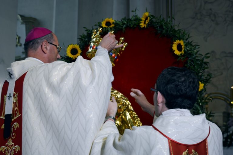 GALERIA ZDJĘĆ – KLIKNIJ W święto Wniebowzięcia NMP Prymas Polski abp Wojciech Polak nałożył papieskie korony, poświęcone przez Franciszka na Jasnej Górze, na gotycką figurę Wągrowieckiej Madonny z Dzieciątkiem. Akt ten – mówił – jest wyrazem naszej wiary w królowanie Maryi, oddaniem Jej czci jako Pani i Królowej. Figura Madonny wróciła do wągrowieckiej parafii zarządzanej…